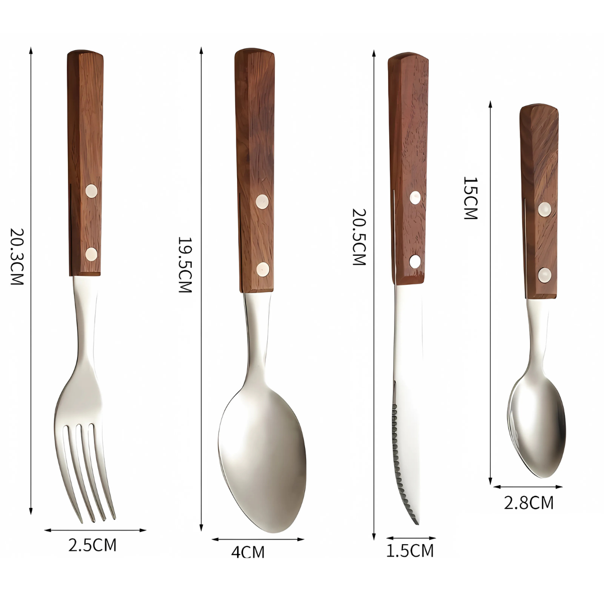 Kit Talheres Rústico Inox Com Cabo De Madeira 24 Pçs Luwave